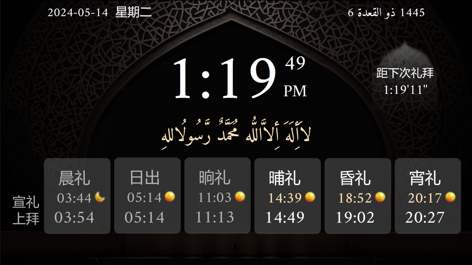 准确并且可调的礼拜时间,我们可以通过礼拜助手盒子获得同步于清真寺的礼拜时间
